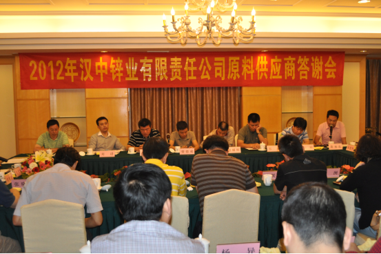2012年10月28日,2012漢中鋅業(yè)有限公司原料供應(yīng)商答謝會在珠海市珠海度假村酒店召開,陜西有色集團汪總經(jīng)理、霍副總經(jīng)理和來自北京、陜西、四川、云南等省、市的原料供應(yīng)商近40人參加了會議。云南宏昆鑫業(yè)商貿(mào)有限公司張春生總經(jīng)理一行三人出席了會議。