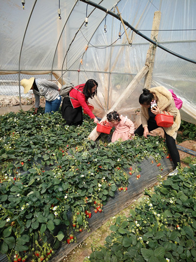 一大早,公司專門為我們準(zhǔn)備了一個男同事作為我們的專屬司機(jī),在公司領(lǐng)導(dǎo)和男同事們的祝福中,大家都帶著喜悅的心情、幸福的笑容,踏上了旅程,一路歡聲笑語。對了,此次旅行還有小白姐家的小公主,她話不多,但是很可愛。因為只是一天的旅程,所以我們就選擇了距離昆明不遠(yuǎn)的安寧市走走逛逛,其實重點是為了安寧的草莓園而去的,順便看看春天里迷人的景色。昆明到安寧的路程不遠(yuǎn),一個小時左右就到了,一下車我們就直奔了同事介紹的草莓園,每個人提著一個小籮筐進(jìn)了草莓園,對于我來說這樣自己到園子里摘草莓是第一次,覺得很新鮮,感覺很好,一進(jìn)園子看到大大小小紅燦燦的草莓大家都好激動,小公主顯得更開心,進(jìn)了草莓園開始在跟她媽媽說悄悄話,也能自己提著籃子摘草莓呢,看看她們母女自然的挨著,竟是這樣一副美麗的畫面。