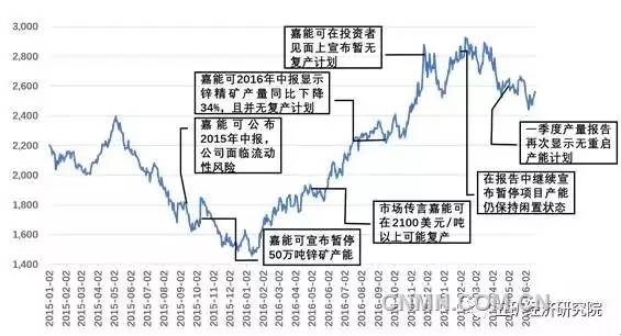 當(dāng)時(shí)在消息宣布之后,LME鋅市場(chǎng)價(jià)格在當(dāng)日在短暫的上漲之后便重新延續(xù)之前的下降趨勢(shì)持續(xù)走弱,并最終企穩(wěn)于1500美元/噸一線。此后,受多重利好支撐鋅市場(chǎng)價(jià)格走出一波趨勢(shì)性上漲行情,伴隨著嘉能可財(cái)務(wù)狀況持續(xù)改善,嘉能可何時(shí)復(fù)產(chǎn)便逐漸成為市場(chǎng)關(guān)注的焦點(diǎn),市場(chǎng)普遍預(yù)期在2100-2300美元/噸的價(jià)位上嘉能可鋅礦復(fù)產(chǎn)的概率較大。