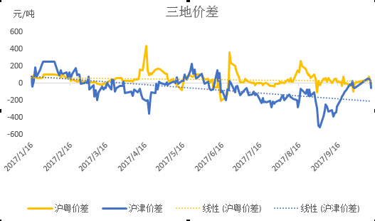 進(jìn)入9月初,北方地區(qū)煉廠檢修基本結(jié)束,市場流通貨源日趨充裕,加之天津被列入全國嚴(yán)重污染城市前五名,在當(dāng)?shù)卣嚓P(guān)的環(huán)保政策面前,鋅下游消費(fèi)被抑制,拿貨意愿不佳,津市升水承壓下行。而上海市場消費(fèi)維持平穩(wěn),升水波動不大。導(dǎo)致兩地價(jià)差向平水靠攏。