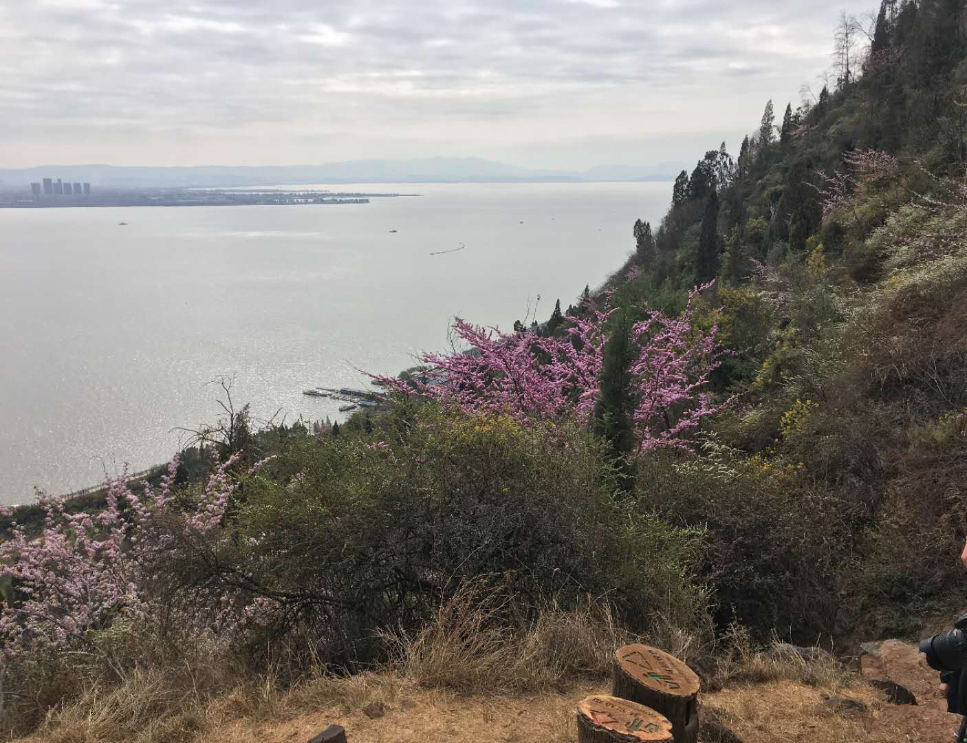 公司一行八人,驅(qū)車前往坐落滇池湖畔的西山公園。三位男同事早已被我們親切地稱之為“婦聯(lián)主任”。還未到西山,便遠(yuǎn)眺“睡美人”的風(fēng)姿綽約。抵達(dá)西山腳下,仰望青峰,山間春花競(jìng)相開放,大有幾分“待到山花爛漫時(shí),她在叢中笑”的詩(shī)境。背上干糧,沿著山腳蜿蜒的石板小路,意氣風(fēng)發(fā),緩步前行。山路兩旁偶遇小商販賣些特色美食,登高途中,有說有笑,不乏活潑可愛的阿姨對(duì)著這一片湖光山色鏗鏘呼喊,一吐胸中山水情懷。雖已累得氣喘吁吁,但仍加緊步伐奔向山頂。許或是出游心境,沒多大會(huì)兒功夫,便已到頂,一行人大有意猶未盡之感。稍作休息,便出發(fā)前往龍門,景區(qū)內(nèi)草木青蔥,空氣清新,順著略顯陡峭的石階往上爬,途徑廟宇,再迂回過幾道石梯,便是龍門。游人都爭(zhēng)相摸摸龍門,沾一沾這一方福氣。站在龍門遠(yuǎn)眺,“五百里滇池奔來眼底,披襟岸幘,喜茫茫空闊無(wú)邊”,登高的暢快在此刻才盡情宣泄。賞著山水美景,吃著自帶干糧,聊著生活趣事,登高的疲累早已拋之腦后。中午時(shí)分,帶著不舍,一行人歡聲笑語(yǔ),徐徐向山腳走去。