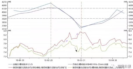對(duì)于鋼材現(xiàn)貨價(jià)格小幅回落造成的鋼材期現(xiàn)基差縮小,可以理解為在期貨遠(yuǎn)期價(jià)格悲觀貼水現(xiàn)貨的情況下,現(xiàn)貨價(jià)格從高位小幅的回落不會(huì)造成遠(yuǎn)期悲觀的進(jìn)一步加劇,對(duì)期貨遠(yuǎn)期價(jià)格影響不大,從而導(dǎo)致期現(xiàn)基差縮小的結(jié)果。