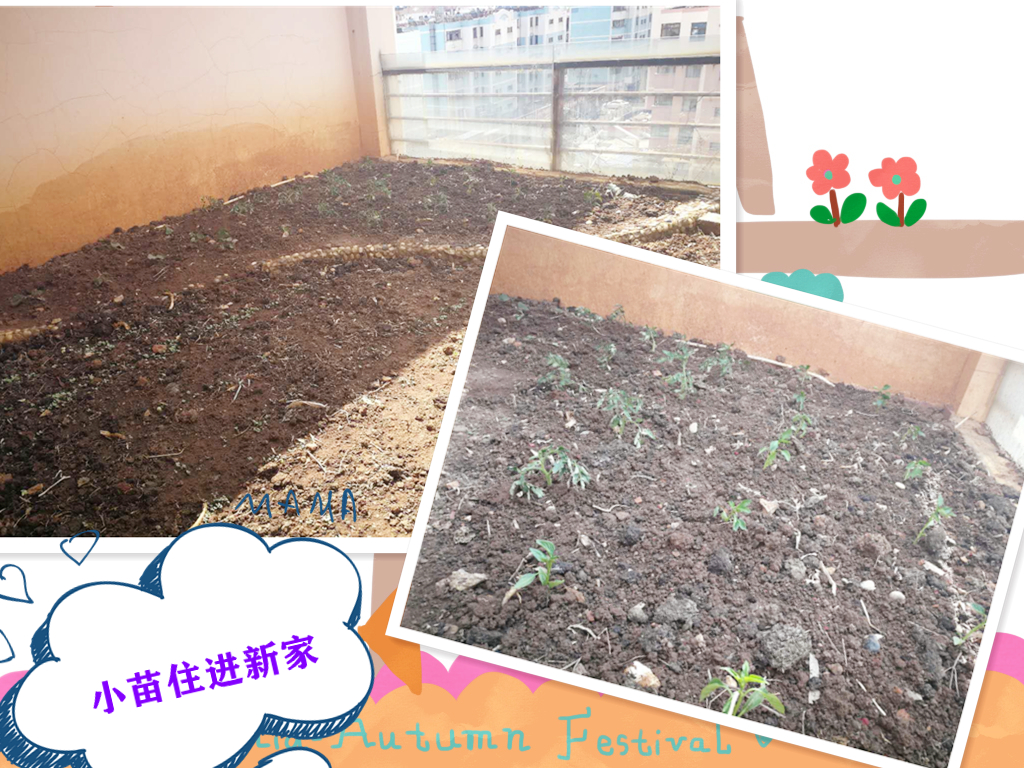 自從小苗種下,每天吃完中飯,都必去看一眼,期待它們?cè)缛粘扇航Y(jié)隊(duì)破土而出。